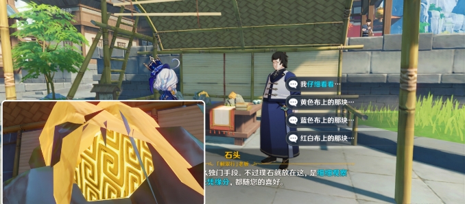最后和NPC对话选择刚才观察到纹路清晰的那块