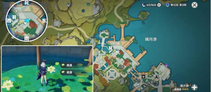 来到璃月港左下方的锚点后朝小地图西偏北方向,在这里有很多莲蓬,采完莲蓬回去交给璐璐即可