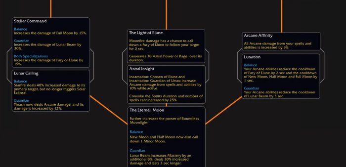 月之守护者:(平衡)月火术和星火术额外生成2点星界能量。(守护)星河守护者自动触发的月火术会产生5点怒气。