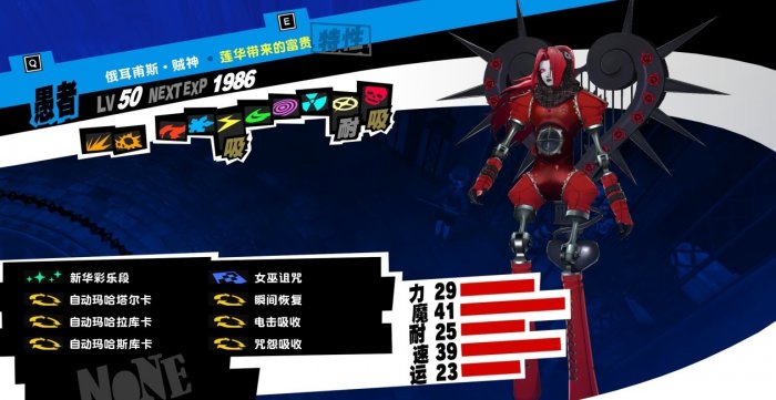 介绍:DLC面具,是P3系列汐见琴音的初始面具,也是结成理的面具。这里使用的特性是【莲华带来的富贵】持有这个特性的P发动辅助技能,无论是对自己还是对同伴效果都会增加二回合。这样【自动XXXX】的效果会持续5个回合。非常强力的面具。但可惜这个特性不是他的(az)。。