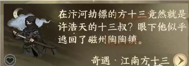 2、剧情中途有个选项是“方十三是谁?”选择以后就会触发本任务传闻