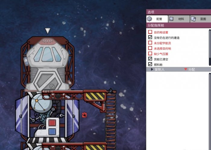指挥舱可以和小人一样改名,指挥舱代表这艘火箭的名字,值得注意的是,点击指挥舱右边会有一排列表,只有都打勾火箭才能顺利发射,我们来依次看一下。