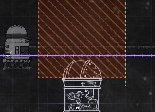 由于望远镜会被陨石砸烂,所以我们需要保护望远镜,方法有两种。第一种就是如图所示,旁边造一个流行爆破炮就OK,第二种则是使用太空扫描仪配合地堡门,当没有流星时打开地堡门,反之亦然。
