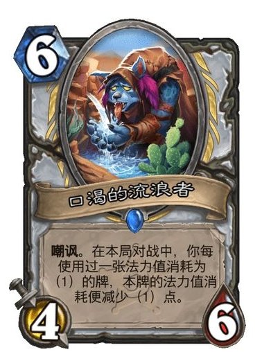 口渴的流浪者的相关细节:这套牌带上了强力水霸,可以博取更高的上限,强力水霸的复制同样可以复制1费的口渴流浪者,所以在有条件复制时可以考虑不下1费牌,先下水霸复制1费牌,另外漏斗蛋糕也是斩杀博上限必备的,如果能复制到,斩杀线可以提高一个档次,如果很缺牌的情况下可以考虑配合小红(赤红教士)来强行过牌。