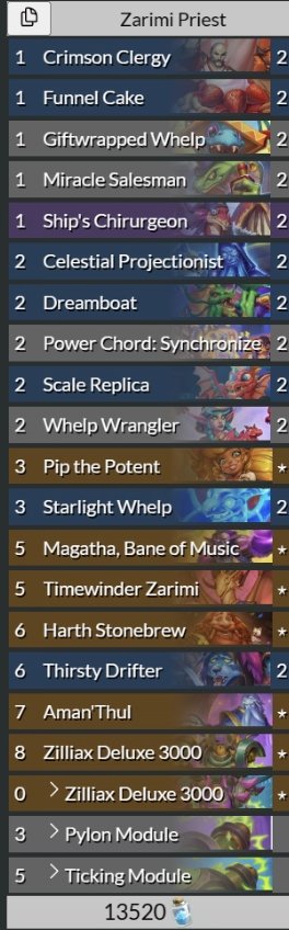 第一套是d0nkey上钻石到传说分胜率最高的构筑,对局思路是前期找龙、拍怪尤其是1费的怪,来为口渴的流浪者减费,方便开门后的铺场斩杀,对照鳞摹稳定抽微缩龙,满足开门、场攻两个条件就可以拿下胜利。
