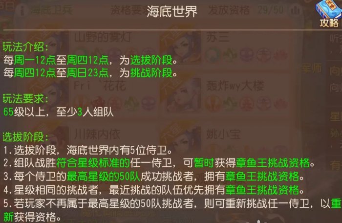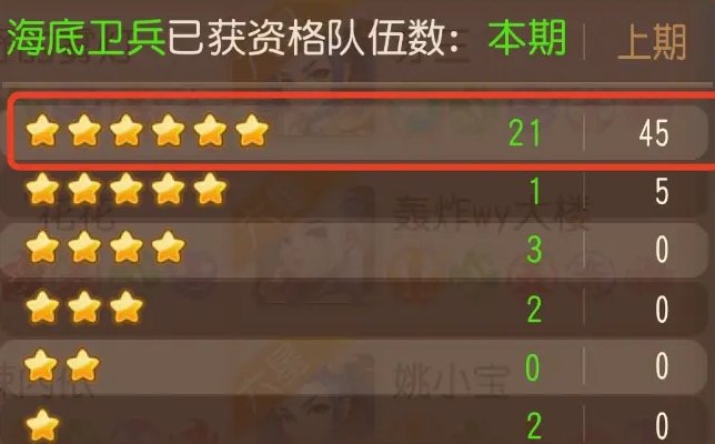 以紫禁之巅服务器,海底卫兵为例,上次有45队6星,5队5星,所以要想有资格,打6星的比较稳,5星的就需要周四卡12点最后2秒,有时候50队都是6星,5星就很难有资格