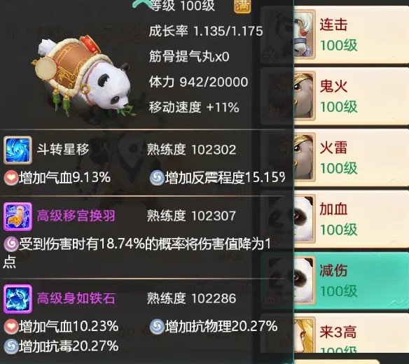 坐骑:移宫换羽为核心技能,带抗物理、伤害法术为优。