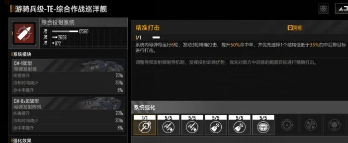 说实话,这是我第一次看到追击类的策略,该策略每6轮发动三轮精确打击,提高50%命中率,优先追锁结构值低于35%的中后排目标。