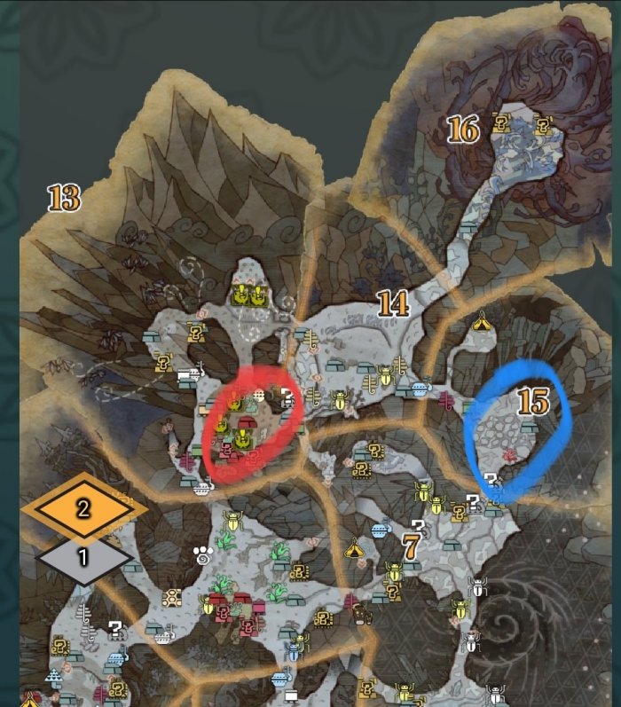 拍怒后尽量将怪引到15区(蓝色圈)其次13区(红色圈位置)的温泉处。