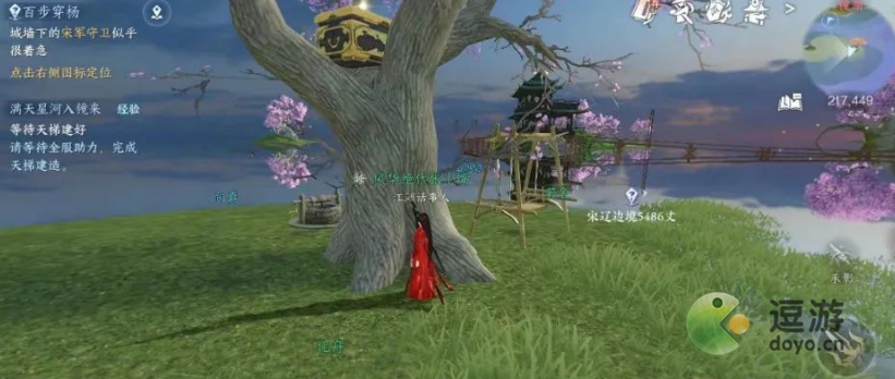8、动作【吆喝叫卖】:镜湖(216,450)树上的大宝箱可以开出,宝箱的前置任务看下面一条。