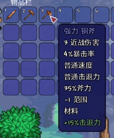 泰拉瑞亚的撸树需要斧头,进游戏时会送有新手铜斧,