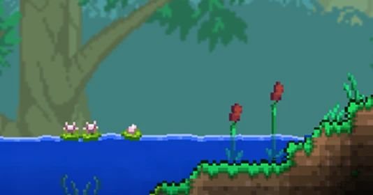 也可以通过看水的颜色去判断是森林还是丛林,下图为森林环境的水,森林的水是天蓝色的;