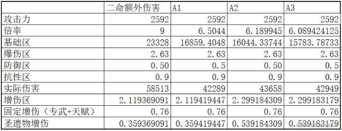 控制了E技能命中两个单位,回收了两层印记,然后同样根据伤害反推圣遗物增伤区,结果如下。