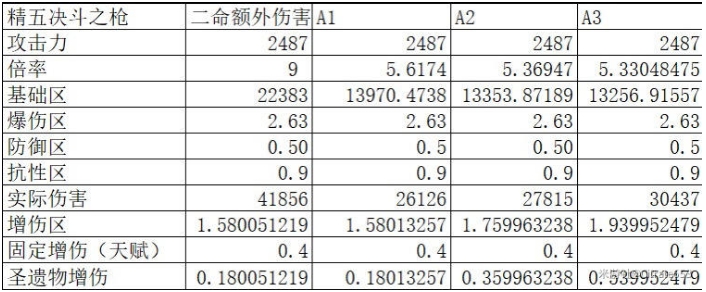 这里采用了精五决斗之枪,测试对象还是90级公义,此时其他条件不变,攻击力变为了2487。测试结果如下