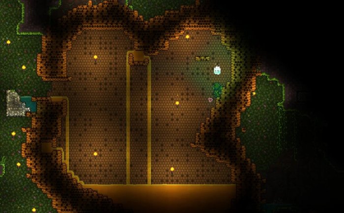 1、丛林地下会有蜂巢,蜂巢中会刷有BOSS蜂王的召唤物,用武器破坏后就会召唤出BOSS;同时,破坏蜂巢会刷出小蜜蜂,以及会有蜂蜜流出,玩家触碰到蜂蜜的时候会有一个增加持续回血效果的增益buff;可以用铁锭制作【铁桶】,用铁桶装蜂蜜带回家做蜂蜜池,打BOSS的时候蹭一下蜂蜜就能享受增益;
