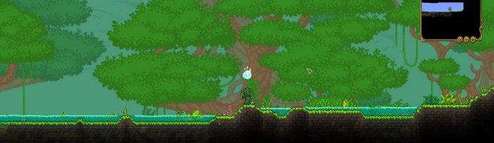 也可以通过看水的颜色去判断是森林还是丛林,下图为森林环境的水,森林的水是天蓝色的;