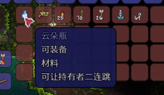 3、丛林地下的废弃房屋内的宝箱,可以开出“云朵瓶”,装备后可以获得【二段跳】的能力;