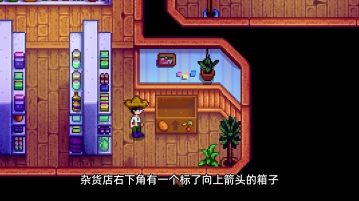 杂货店右下角有一个标了向上箭头的箱子,在接下了特别任务“皮埃尔优选”后,你需要把25份金星品质的蔬菜放到里面。