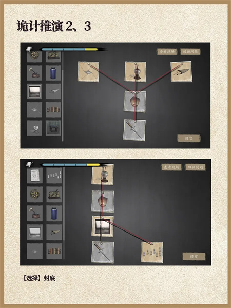 4. 询问完嫌疑人,自动触发剧情,第一次举证出示:【警区地图】,第二次举证出示:【凶器匕首】