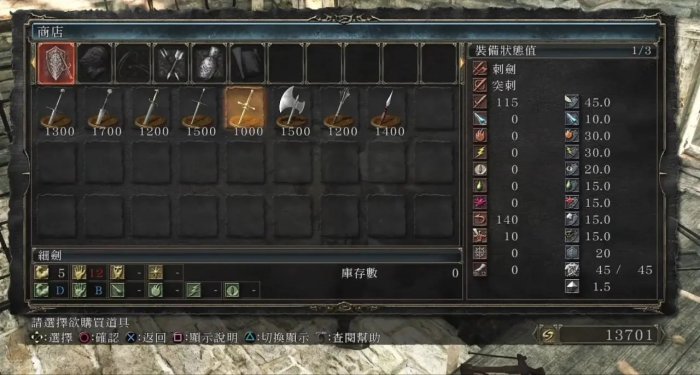注:武器平衡系统做的可以,这里随便一把武器都可以通关,建议选择“细剑”,因为后期进dlc可以获取魂2毕业武器“冰之刺剑”,算是为冰刺的使用做铺垫。