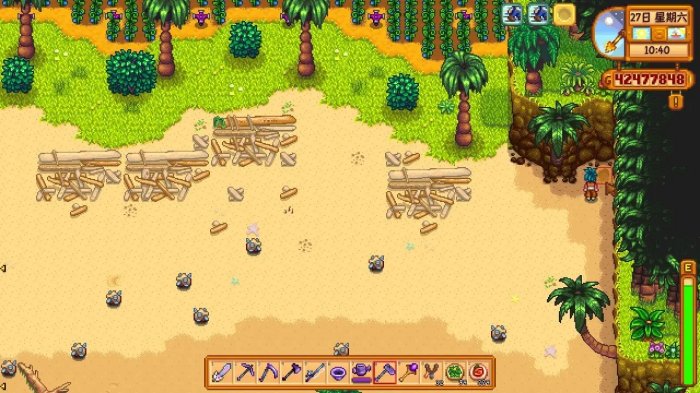 还是在姜岛农场的位置,往下走会看到一片蚌区,沿着蚌区往右边走即可看到这块地方,对着下图中标志了的地方锄地,即可获得一个金核桃和一颗珍珠