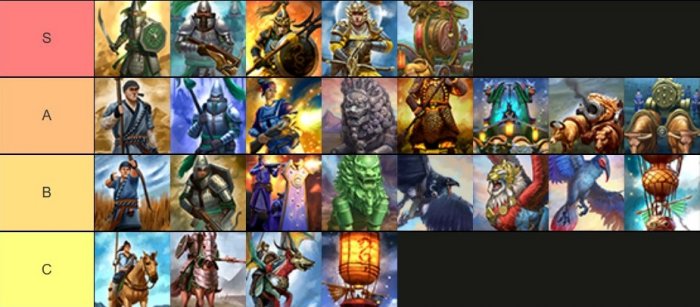 震旦由于发展被削,导致跳本速度变慢,低本部队的使用次数和泛用性都有了不小的提升,二本和三本部队的使用变得更多了(感觉和矮人有点像),所以整体测评更偏向中前期,后期震旦的龙弩和龙卫的强度仍然是最高的。由于中期高级兵营兵营距离前线可能偏远,无法快速补充高级部队,需要进行运输。