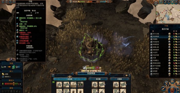 高阴行省秩序稳定而且建造高级建筑速度很快,但招募容量和招募等级都非常少,所以建造高级建筑后转阳是非常好的选择。