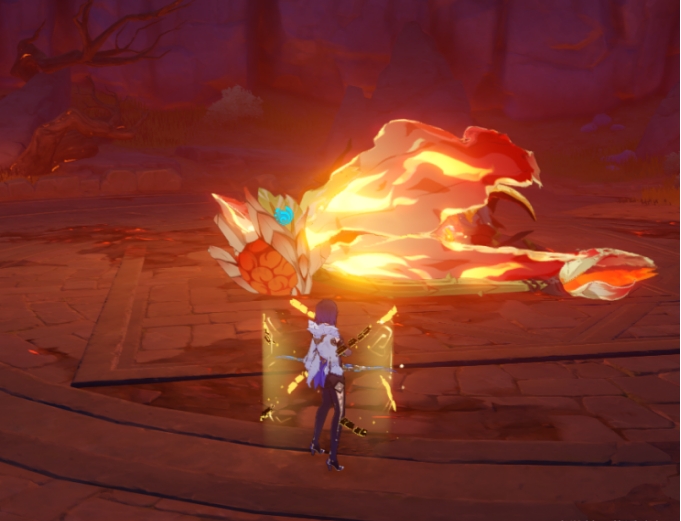 将爆炎树头上的护盾击破后,就会进入到瘫痪状态,将其击败即可