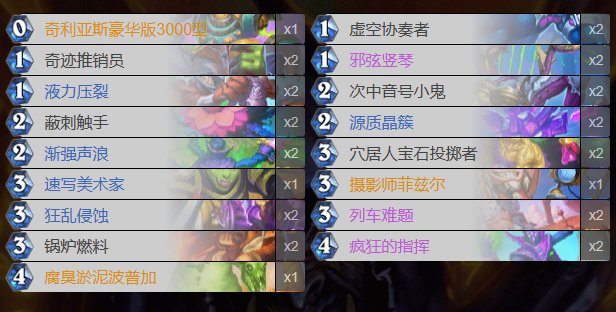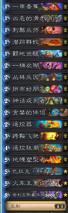 奇利亚斯均为输能和计数,猎人2费《贪婪的伴侣》可以换成泰坦,我个人喜欢带小随从。