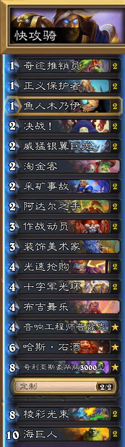 现版本主流慢速卡组较少,比如宇宙战,宇宙萨,术士,相反,快攻形态很多,强度也可以。