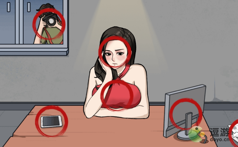 1、文字找茬大师抑郁明星,需要找出所有让她伤心的地方,首先点击她的脸,点击她的衣服