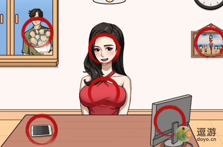5、然后进入另一个场景,点击点击她的脸、衣服、窗外的男生