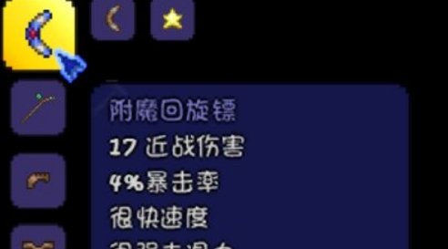 在下面的箱子中发现了回旋镖,这个和一颗星星可以合成一个附魔回旋镖,前期还是蛮强的。