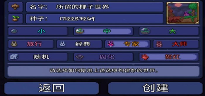 种子推荐默认,点击种子栏左边的种子图标可以更换随机种子,新手玩家建议游玩随机种子,熟悉游戏后再去游玩特定种子地图;