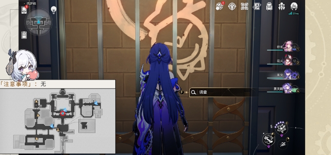 1.来到【流梦礁】2层的中部,乘坐电梯下去,在电梯运行途中,调查墙壁上的图案即可