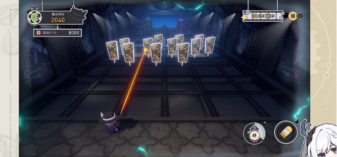 2.来到第2道,等时间剩28s时(折纸小鸟下去),开时停射击中间的靶子即可