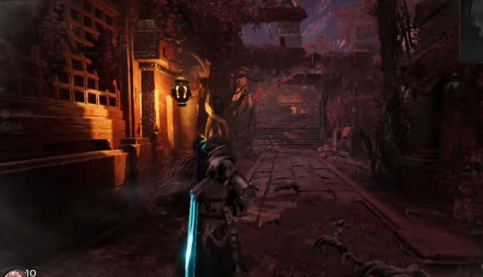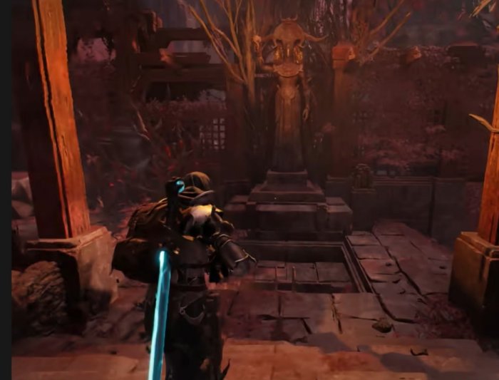 副本为皇家花园,进图直走后左转,来到第二张图雕像处,若此时为血月天气,则雕像下的密室则会打开