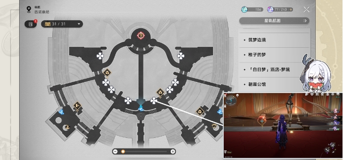 1.来到【匹诺康尼大剧院】的北部,在舞台周围有8个人偶,点位如图
