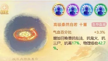 泰然自若:增加气血百分比,抗仙法。鬼火,三尸,毒,物理吸收