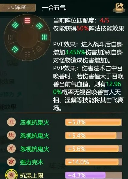 八卦阵法用一合五气,可以增加伤害加深。信物也是以忽视为主,强力克为辅。