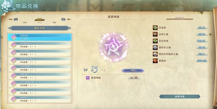 首先是物品兑换,这里能换到各种材料,但是兑换材料的代币是不统一的。