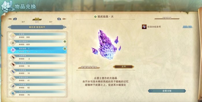 虹星晶,梦幻精炼材以及锻武结晶是用拉法尔纪念币兑换,其他材料则是以物换物的形式,相当于用不那么需要的多个素材兑换需要的怪物素材。(当然大名鼎鼎还得是银天之辉)
