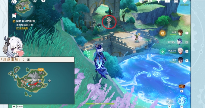 6.向东离开河流,来到标记位置(顺便把锚点开了)