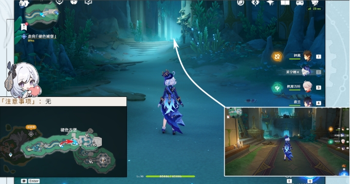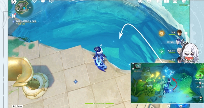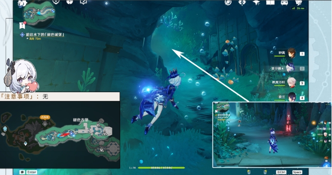 5.然后跳进下方的泉水,潜到水底,顺着漩涡前进