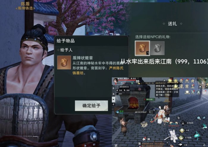 六、从水牢出来后~咱们来到江南(999,1106)!找这个npc给信物~获得外观拥盾自重~