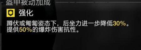 2、防爆甲:给予50%的爆炸抗性和30%的后坐力降低,打机器人的时候表现非常不错,带上防爆甲能很有效的避免被火箭蹂躏者一轮直接抬走这种情况的出现,降低30%后坐力也可以更好地对枪,个人机器人推荐防爆中甲;
