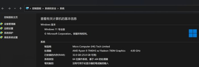 可以在控制面板里面简单的查看自己的处理器与内存