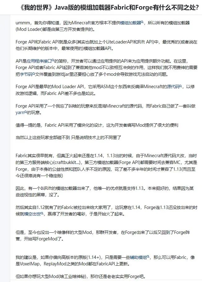 而fabric,它像绝大多数其他模组一样,是由Fabric加载器加载的模组,且绝大多数其他的Fabric模组都依赖它。Fabric API起到了兼容其他mod不以致相互冲突的作用。
