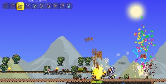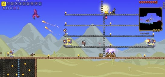 战斗场地允许矿车轨道存在,这允许玩家使用矿车碾压敌怪。