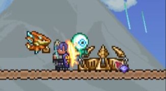 事件目标是在一波波想要摧毁它的敌人之下保护永恒水晶,清掉靠后的波数会奖励给玩家护卫奖章,这是种独特的货币,可以用来向酒馆老板 NPC 购买特殊武器和盔甲。这装备特别适合于此事件,因为其难度特别高。注意其敌怪不仅有超强的抵抗力,还部署了许多反作弊/漏洞机制,例如在其持续时间内阻止玩家放置或移除物块或液体。